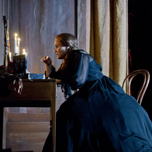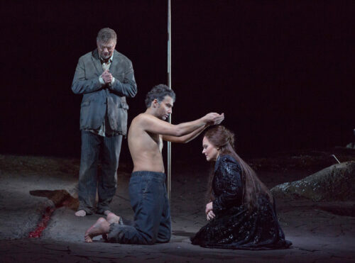 Jenufa på Kungliga Operan hösten 2017. På bilden; Katarina Dalayman i rollen Kostelnicka, Sara Olsson som Jenufa och John Erik Eleby som Bydomaren.